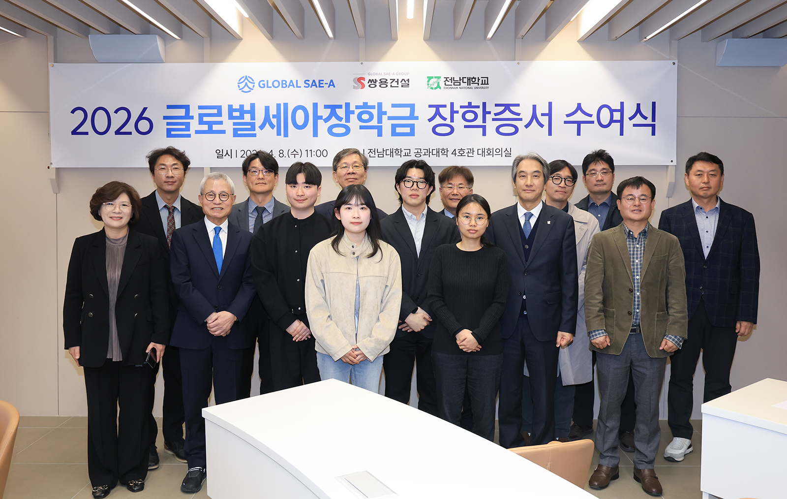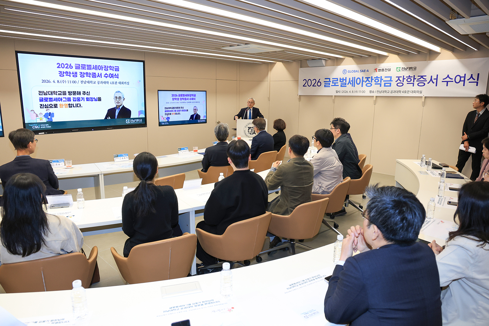 이번 수여식은 글로벌세아그룹의 지속적인 인재 육성 의지를 바탕으로 마련된 자리로, 글로벌세아그룹 김웅기 회장을 비롯한 회사 관계자, 이근배 총장, 고성석 부총장, 대학본부·공과대학 관계자, 그리고 장학생 등 총 20여 명이 참석하여 뜻깊은 자리를 함께했다.